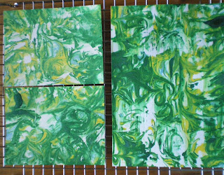 Nichole Heady outlined a variety of techniques to create background papers that resemble a 'tie-dye' effect. I chose to make papers using the  Shaving Foam Technique.i don't have many re-inkers for this method so I used yellow and green food colouring and a Crystal Blue re-inker (Close To My Heart).